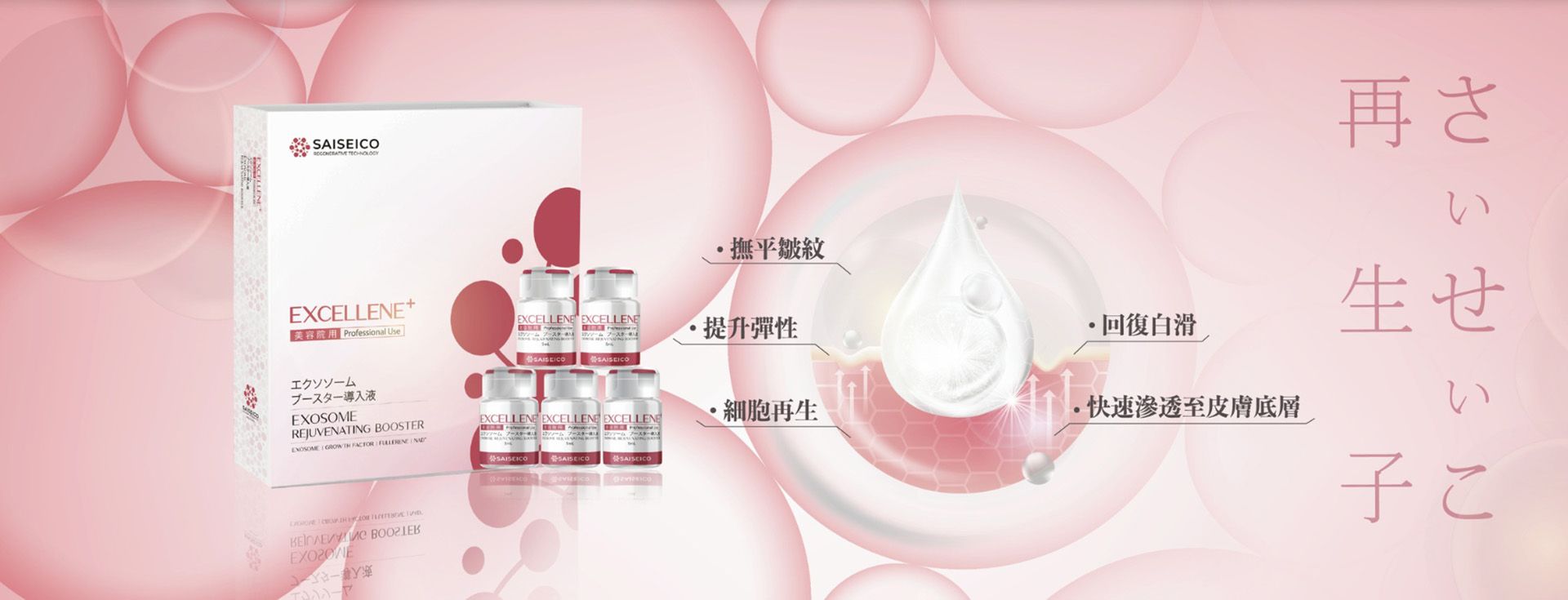 SAISEICO的外泌體來自於優質的人類脂肪幹細胞,這不僅是免疫與細胞再生的關鍵,也是抗衰老的全能選手。我們的產品由日本GMP認證的藥廠生產,確保每一滴都安全可靠,讓您在享受美容效果的同時,無後顧之憂!