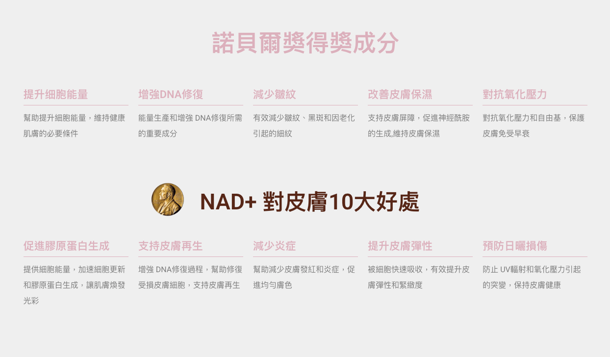選擇含有NAD+的產品,讓您的細胞恢復生機,抵抗衰老的侵襲!不論是提升活力、改善肌膚狀態或增強整體健康,NAD+都將是您獲得青春活力的最佳助力。立即行動,讓NAD+幫助您重獲年輕,展現精彩人生!